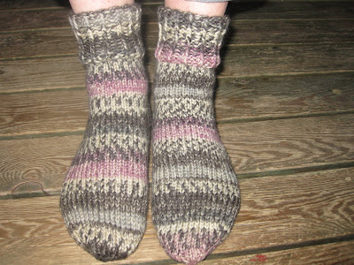 Endelig ble jeg ferdig med aprilsokkene mine. Man skulle jo tro at disse var fort gjort, men den gang ei. Valgte tykt garn og tykke pinner for at det skulle gå fort og greit, men når nakke, skuldre og rygg nekter å være snill med meg så tar det sin tid. Tror aldri jeg har brukt så lang tid på så enkle sokker før. I april var sokkeoppgaven ganske fri, temaet var garnstudio sine sokkeoppskrifter. Det betyr at man kunne velge fritt fra sokkeoppskriftene som er på garnstudio sine sider. Tast inn sokker som søkeord på denne siden og velg.